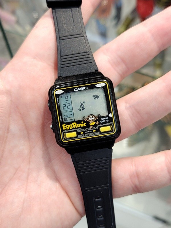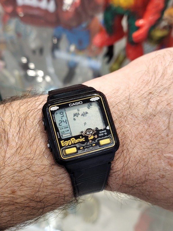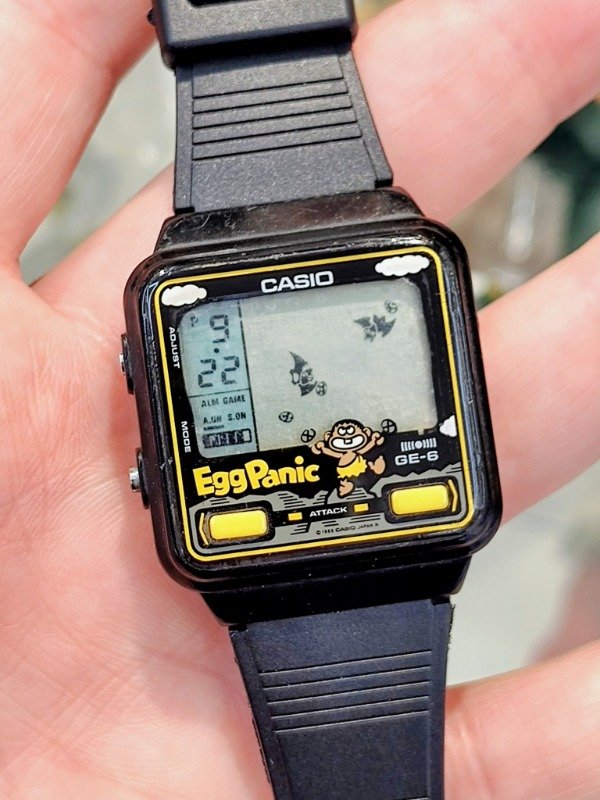 Reloj CASIO vintage con jueguito modelo GE-6 Egg Panic. Es del año 1985, fabricado en Japón. Está funcionando perfectamente tanto la imagen como el sonido. Detalles estéticos a la vista por el roce y el paso del tiempo.